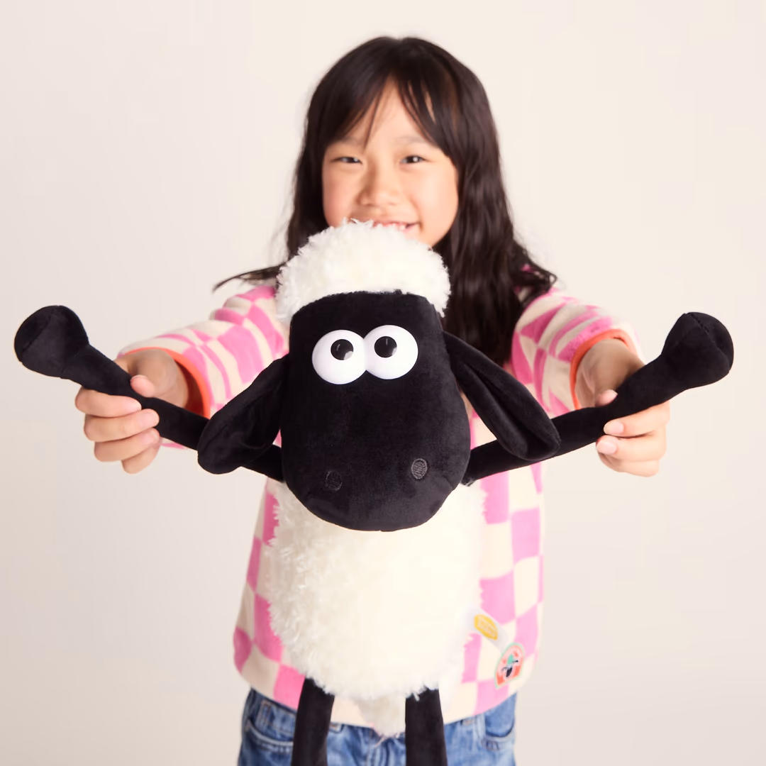 Shaun the Sheep has been a family favourite since he first appeared on our screens back in 1995.  Since then, his popularity has grown into a worldwide phenomenon with 5 TV series, a BAFTA award, games and generally a huge following. He is the coolest sheep around.  Now you can have your very own Shaun the Sheep soft toy.  Made from the softest and highest quality materials, this Shaun the Sheep is super cuddly, has dangly legs and arms with 3d eyes giving him his unique character features.