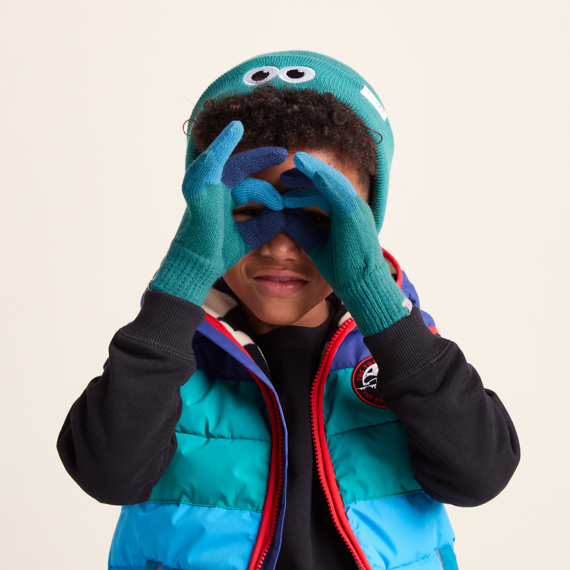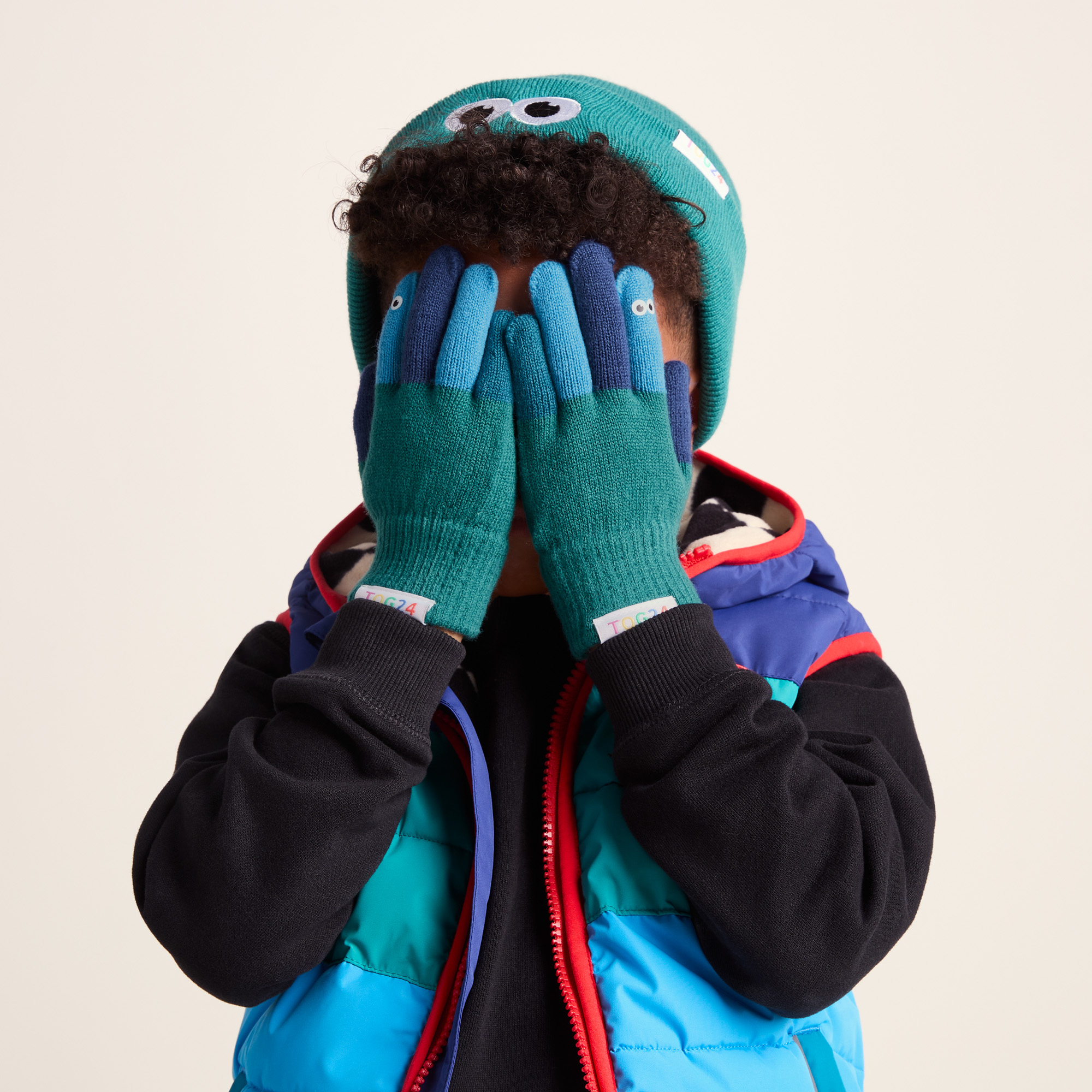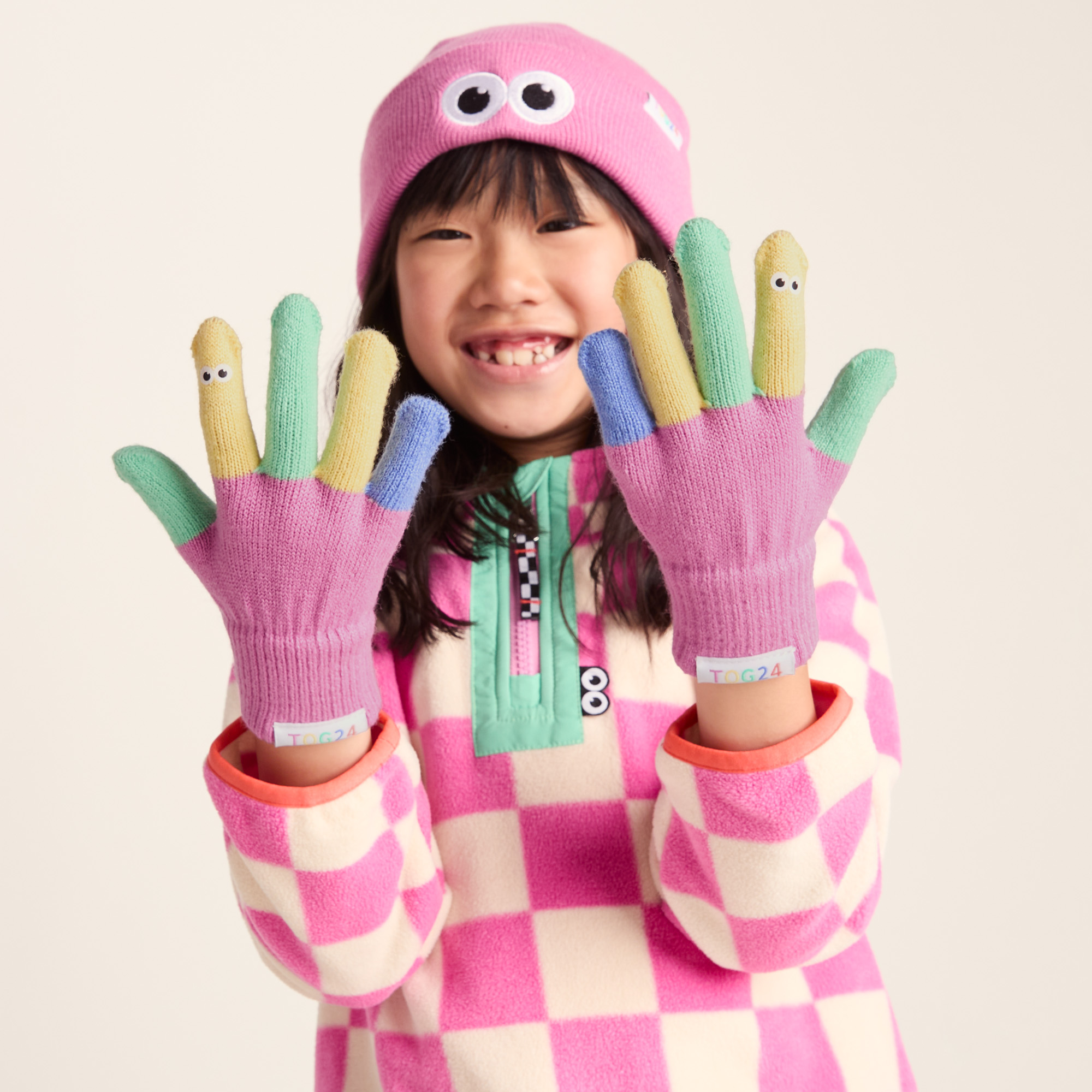 Get ready for chilly times ahead with these fun-packed Adal knitted kids’ gloves from our TOG24 X Shaun the Sheep lineup! Kids will go crazy for the coloured fingers, complete with peeping Shaun the Sheep eyes on the index finger, turning every wave into a puppet show! These super-soft knitted kids’ gloves aren’t just about looks though – they’ll keep tiny hands toasty during all those mud-splattered days in the park, with snug ribbed cuffs that trap warmth when there’s a touch of the chillies in the air. Â With a cute little multi-coloured TOG24 tag on the cuff as a nod to our fun collaboration with the world’s most mischievous sheep, these children’s gloves are built for kids who can’t sit still.