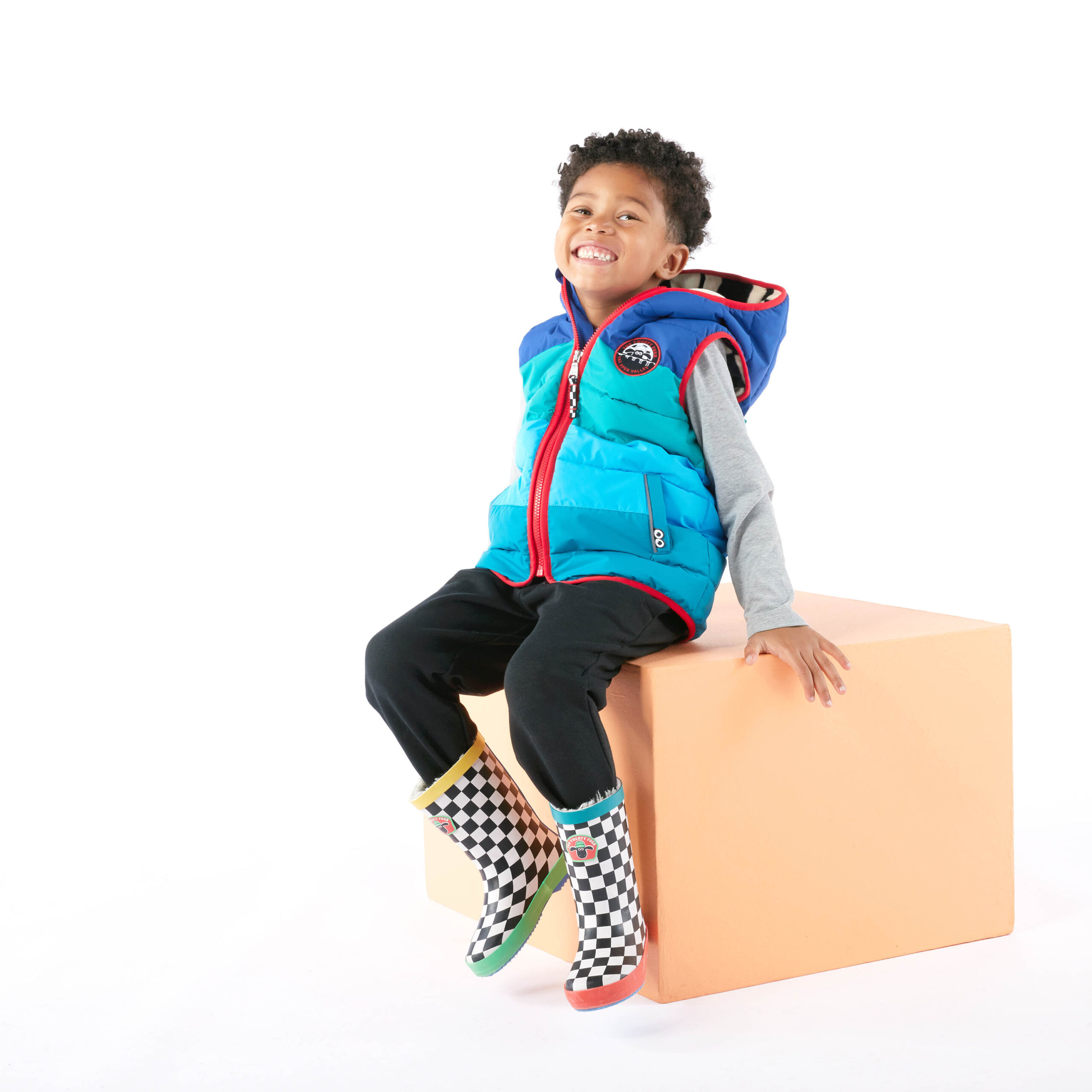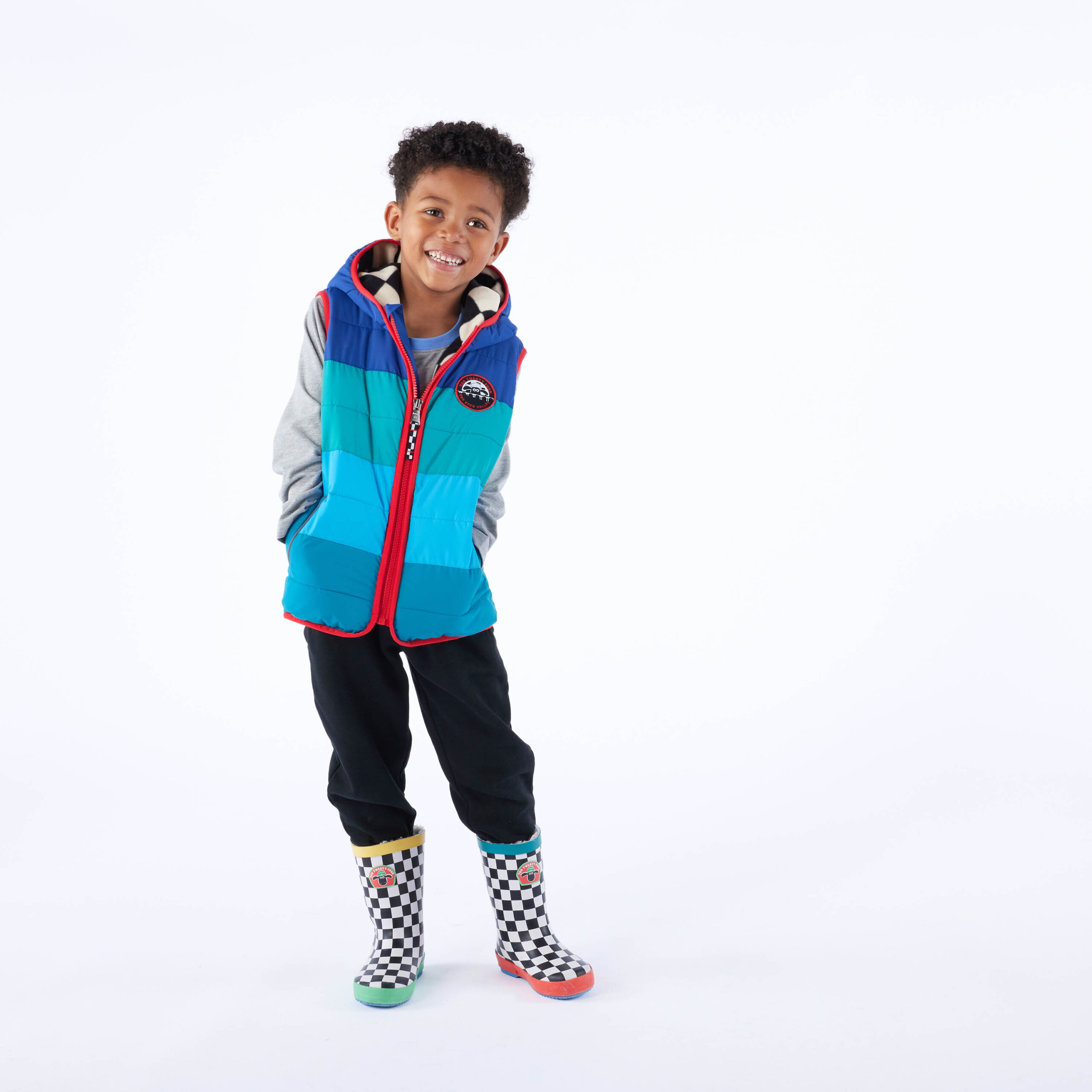 Unzip the Gotland gilet to reveal a cosy checkerboard fleece lining that’s totally snuggable and huggable. The contrast binding on the hood and armholes adds a lovely little touch, and the reflective trim on the two lower pockets ensures they’ll remain visible at all times of the day. You’ll also find Shaun’s iconic googly eyes perched on the pocket for a dash of extra fun. Inside, a reusable name label, complete with a friendly ‘I’m still going strong, pass me on’ message, reminds everyone this gilet is built to last and ready to be passed on when it’s outgrown.